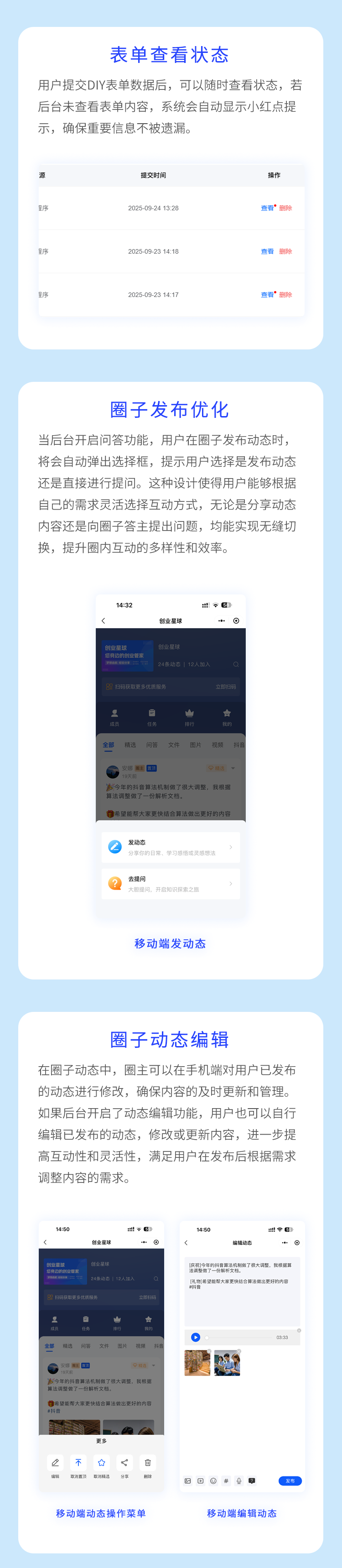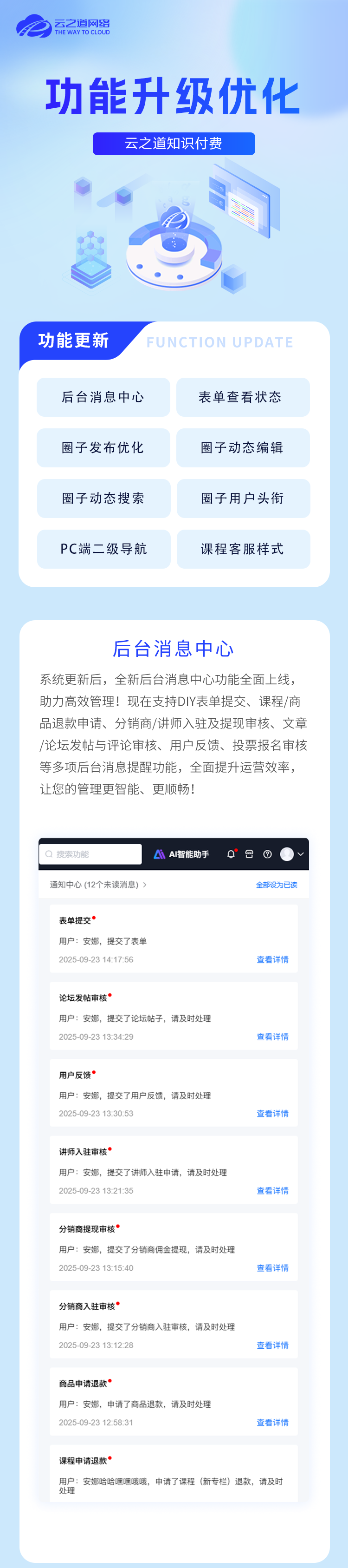 【更新】后台消息中心、表单查看状态、圈子功能优化、PC端二级导航等!