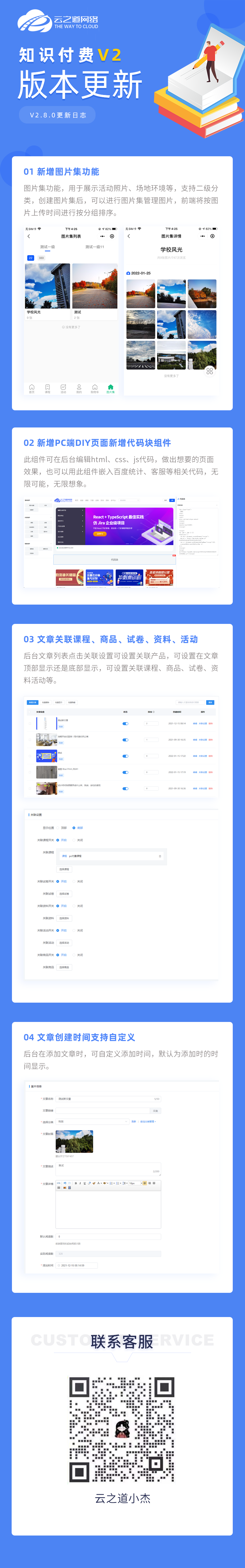 【更新】图片集、PC代码块组件、文章关联产品、课程视频竖屏全屏播放......
