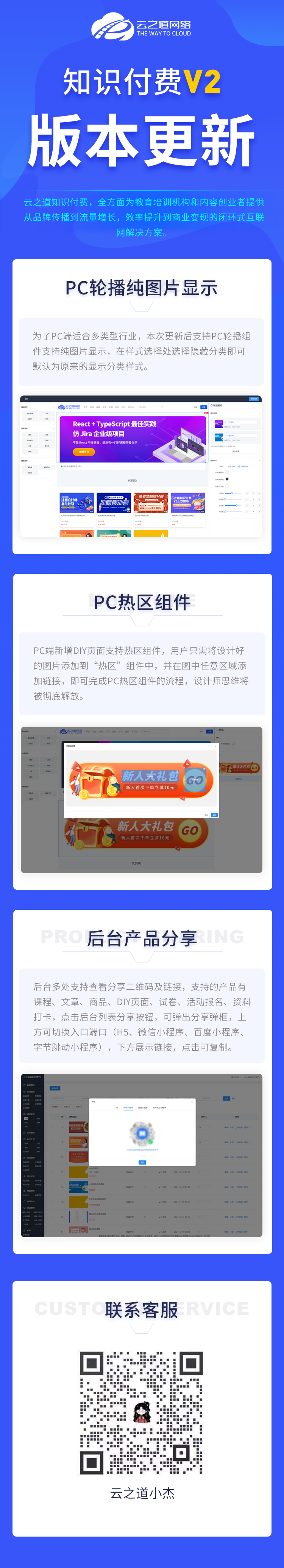 【更新】PC轮播图纯图片、PC热区组件、后台产品分享、产品标题、分销订单及提现导出......