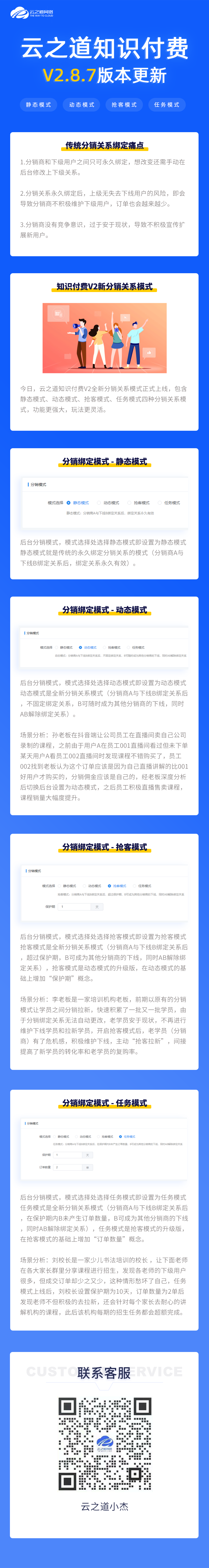 【新增】分销模式:静态模式、动态模式、抢客模式、任务模式